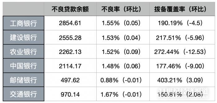 从拨备来看,趋势与不良率相同,四大行拨备覆盖率均出现下降,农业银行降幅最大为12.53个百分点,邮储银行、交通银行均微幅提升。