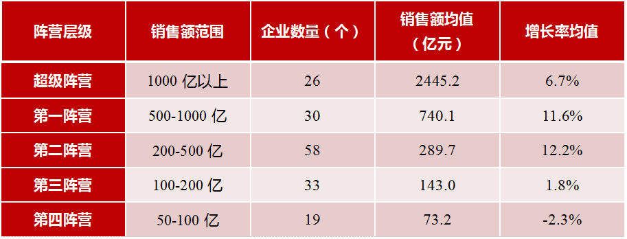 表:2020年1-10月房企各阵营数量及销售额均值情况