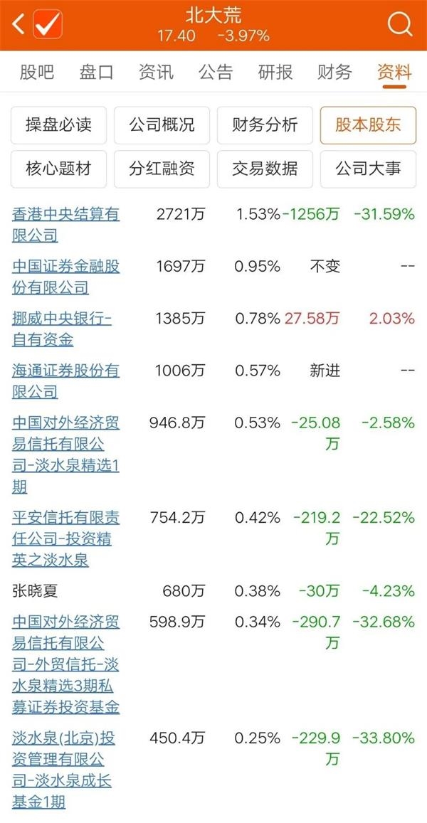 其中石锋资产并没有出现在上市公司的前十大流通股东名单中;林园投资旗下的林园投资21号与林园投资101号均退出了片仔癀前十大流通股东;三季度彤源投资旗下产品则现身博汇纸业、欧普康视、甘源食品、日辰股份、皇马科技等七只股票的前十大流通股东名单。