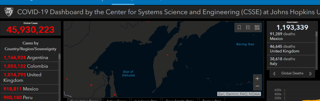 据美国约翰斯·霍普金斯大学发布的全球新冠肺炎数据实时统计系统,截至美国东部时间10月31日晚6时,全美共报告新冠肺炎确诊9104336例,死亡230281例。过去24小时,美国新增确诊85812例,新增死亡925例。