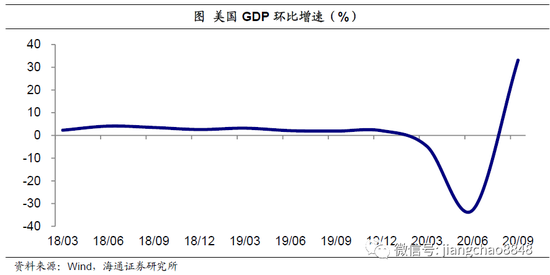 美国三季度GDP创新高。上周四,美国经济分析局公布数据显示,美国三季度GDP增速年化季率初值为33.1%,创1947年开始统计以来的最高纪录,预期增速31%,前值-31.4%。