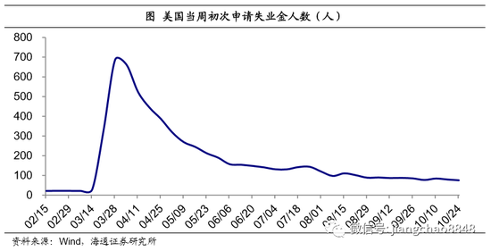 美国公布上周初请失业金人数。上周四,美国劳工部数据显示,至10月24日当周美国初请失业金人数为75.1万人,为自3月14日当周以来新低,连续6周低于100万人,预期77.5万人,前值78.7万人。