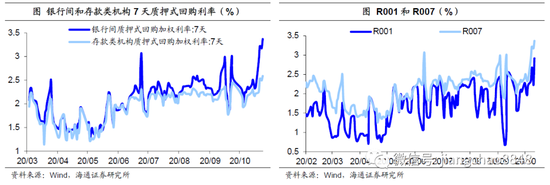 上周货币利率上升。R001均值上行42bp至2.56%,R007均值上行77bp至3.18%。DR001均值上行23bp至2.29%,DR007均值上行25bp至2.48%。