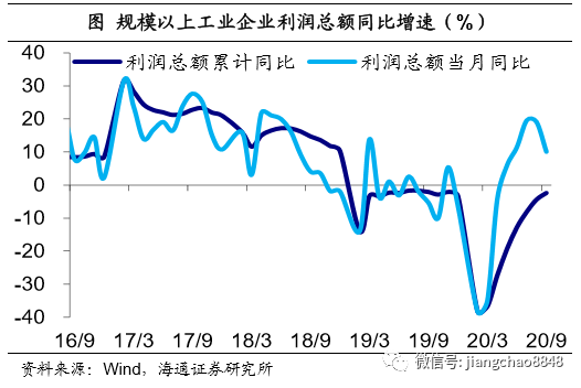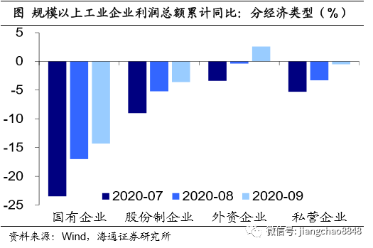 各类型企业均有改善。1-9月各类企业利润增速均继续改善,分经济类型来看,外资企业累计增速已由负转正至2.6%,私营企业降幅也收窄至-0.5%,而国有企业和股份制企业则分别回升至-14.3%和-3.6%。