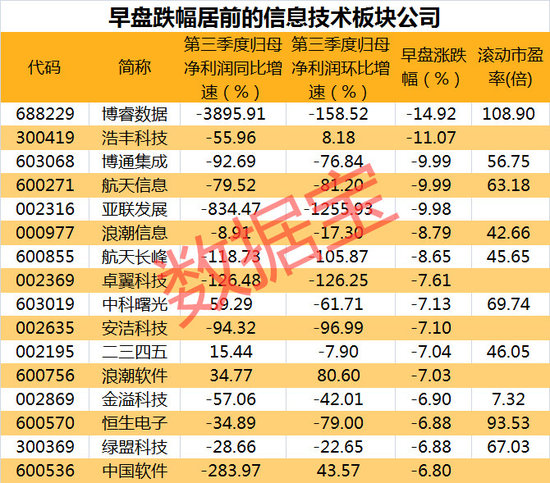 今日大跌的信息技术板块公司多数在上周五收盘后发布三季报,业绩表现不及预期显然让投资者选择了用脚投票。