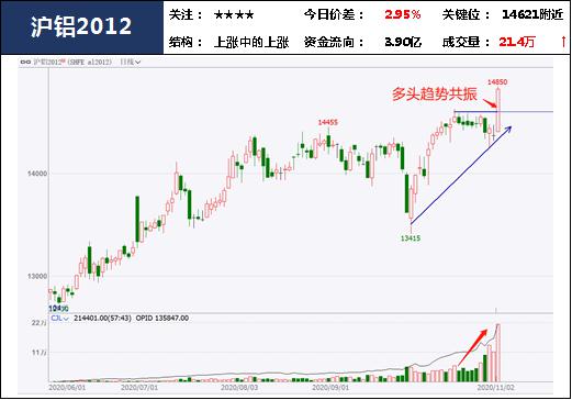 供给端,开工负荷有所提升,但未达到期待值,社会库存低位运行,总体供应偏紧。需求端,下游需求较好,出口订单也维持较好的需求。但是国外疫情反复,出口端压力较大。技术上,沪铝今日量价齐升,触发多头趋势共振信号,上涨结构明显,多单可持有。