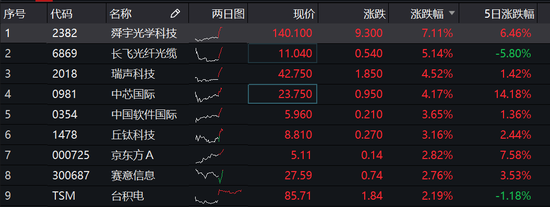 热点栏目各大企业开始供货华为,华为概念股集体走高。其中,舜宇光学涨超7%,长飞光纤光缆涨超5%,瑞声科技、中芯国际大涨超4%,丘钛科技涨3%。