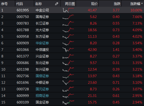 "牛市旗手"王者归来?券商股大反攻,21亿主力资金疯狂扫货,中金迎来首个涨停