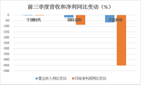 今年前三季度,孚能科技营收和净利同比分别下滑65%和452%,并未跟随行业复苏反而呈现加速下滑趋势。而同期,宁德时代和国轩高科的业绩降幅均显著小于孚能科技,且止跌迹象更为明显。