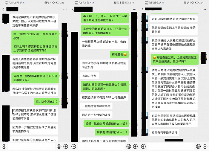 但不少学员们认为“不认可营销课”其实是“大佬们的一种特权”,因为“大佬们没有普通人的压力”——而这往往是普通人“明知是智商税却依然乐此不疲”的最核心原因。