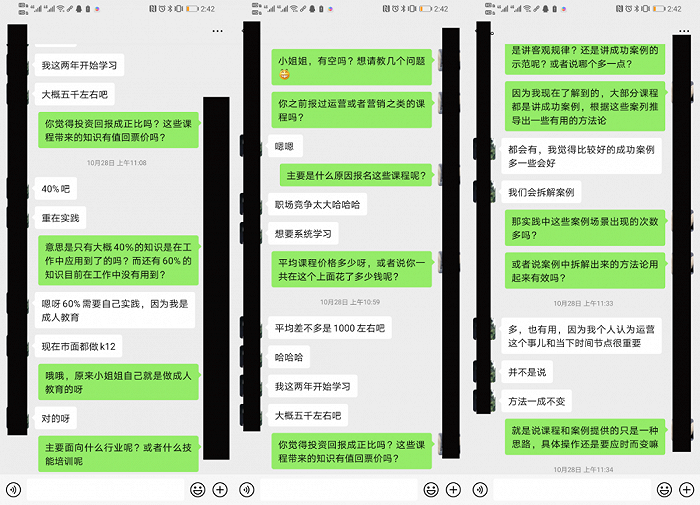 当时他觉得同学“屁股歪极了”,“作为付费学员怎么能站在收费者的立场上来自我安慰呢”。后来这个心结还是他自己打通的:“你想想,他能这么配合,说明老师的营销理论确实很奏效。”