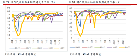另外,国内加工厂本周开工率保持稳定,与去年相比仍处于较好水平,全钢胎开工率约为 75%左右,部分轻卡胎仍然缺货,而在政策的支持市场的需求下,未来重卡更换或将继续保持较快速度。