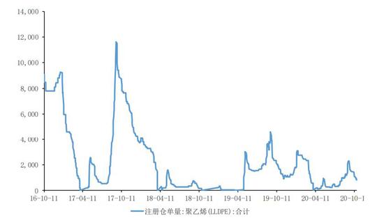 注册仓单情况:近段时间LLDPE注册仓单数量减少,截至10月22日,大商所LLDPE注册仓单数量为854张,较10月初减少了572张。