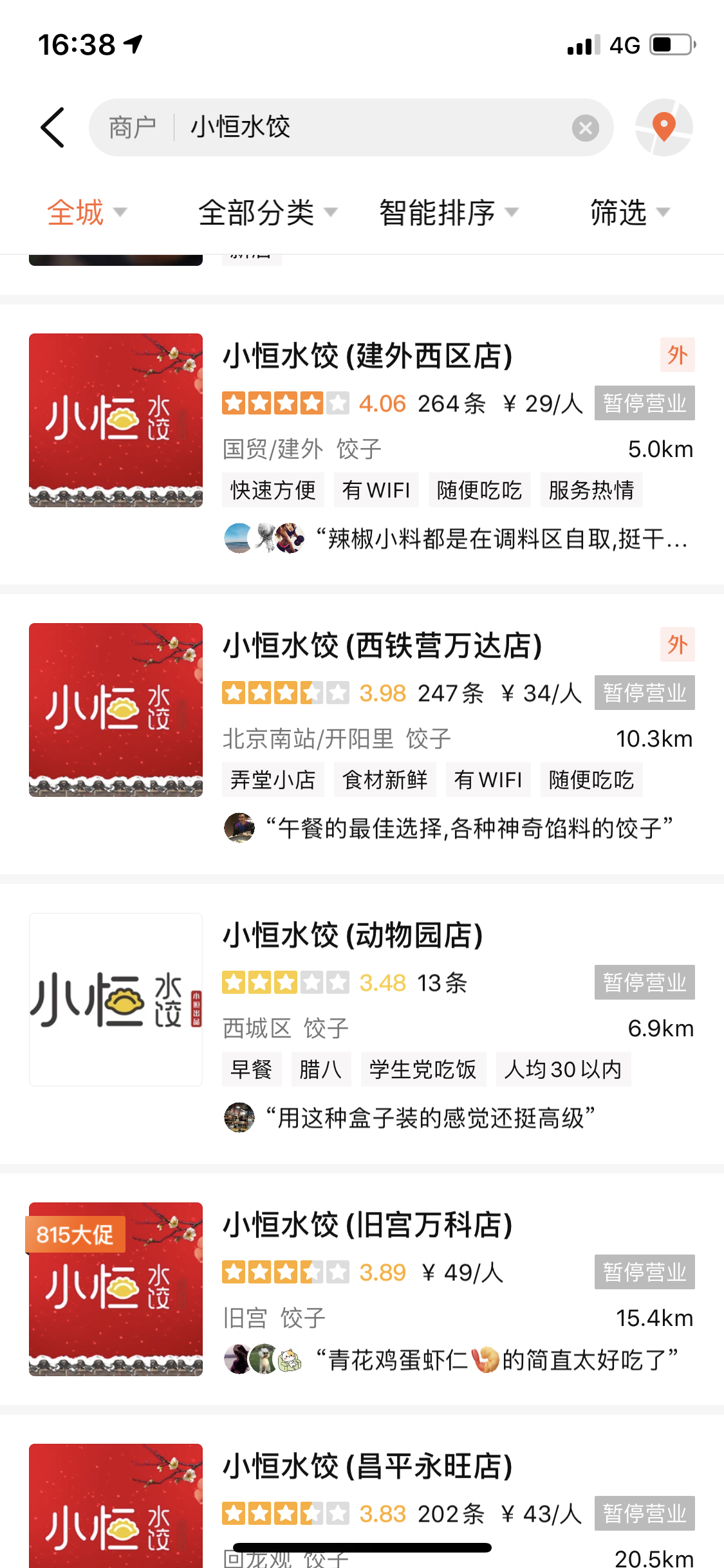 大众点评的小恒水饺门店