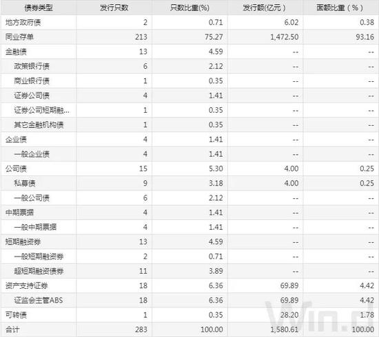 从发债类型看,11月5日,债券市场共发行地方政府债2只,同业存单213只,金融债13只,企业债4只,公司债15只,中期票据4只,短期融资券13只,资产支出证券18只,可转债1只。