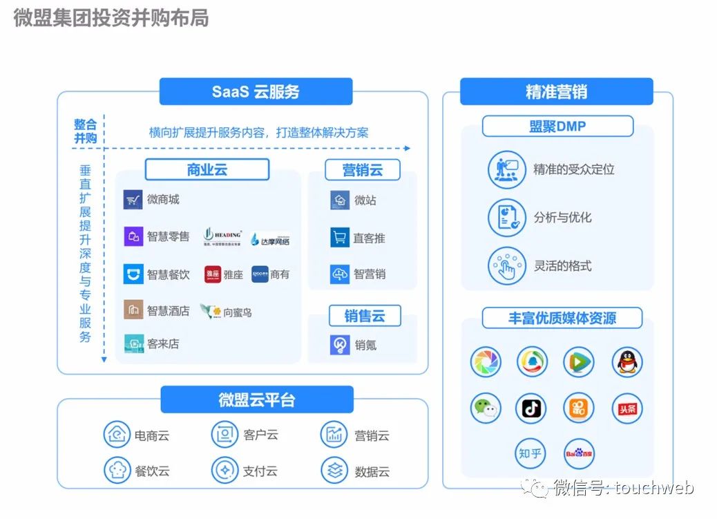 通过一系列产业投资并购动作,微盟集团进一步深化扩展了智慧餐饮、智慧零售等SaaS垂直行业的业务和资源,完善了智慧商业领域的全链路生态布局。