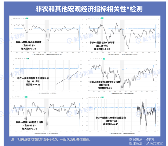 但通过相关性分析,D哥发现非农数据和部分宏观指标经常容易出现背离。