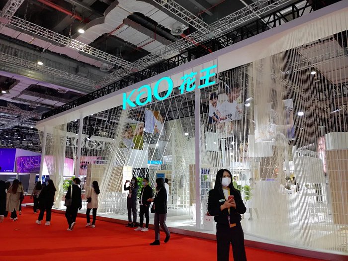 此次花王参展面积达500多平,分别设置面向“新未来的健康、美生活”、面向“新未来的洁净、卫生生活”两大区域,展示集团不同产品。