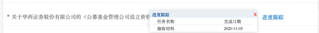 根据证监会披露,华西证券向监管层报送《公募基金管理公司设立资格审批》的申请,证监会已于11月5日接收材料。