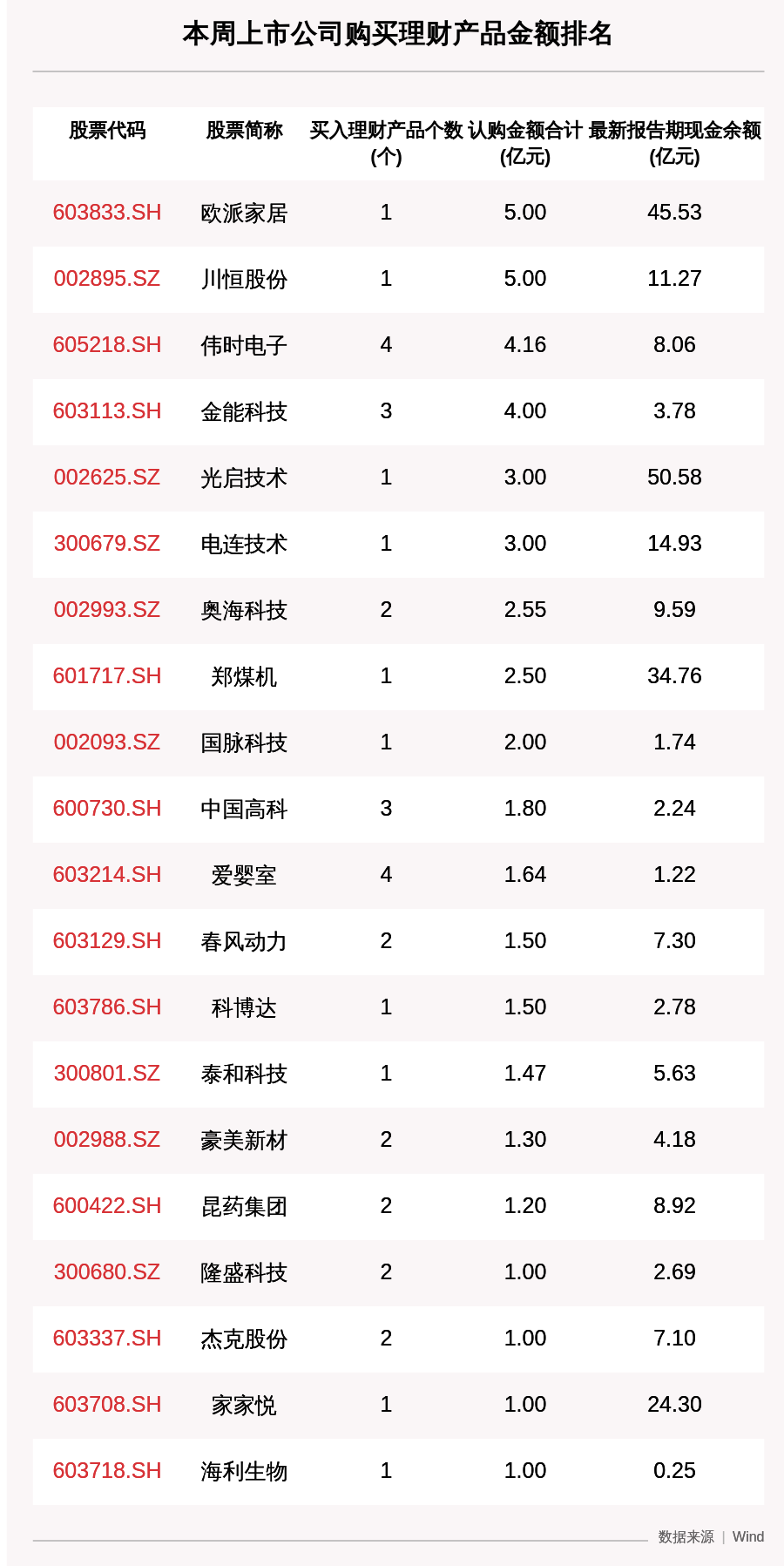 从买入金额上来看,购买理财产品金额排名前三的公司是欧派家居(603833.SH)、川恒股份(002895.SZ)、伟时电子(605218.SH),买入金额分别为5.00亿元、5.00亿元、4.16亿元。