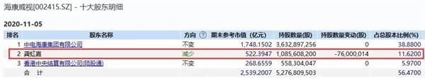 这一波减持完成后,龚虹嘉仍然持有海康威视约11亿股,占比11.62%,按昨日收盘价折算约合533亿元。