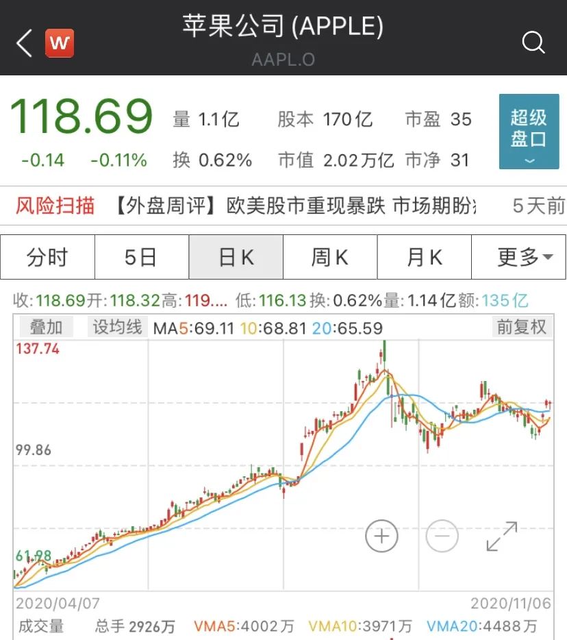 截至2020年9月30日,伯克希尔·哈撒韦大约70%股票持仓集中在四只股票。其中持有市值最高的是苹果(AAPL.US)股票,持有1117亿美元,较第二季度末的915亿美元增加202亿美元。据统计,苹果公司年内涨幅高达67.28%。
