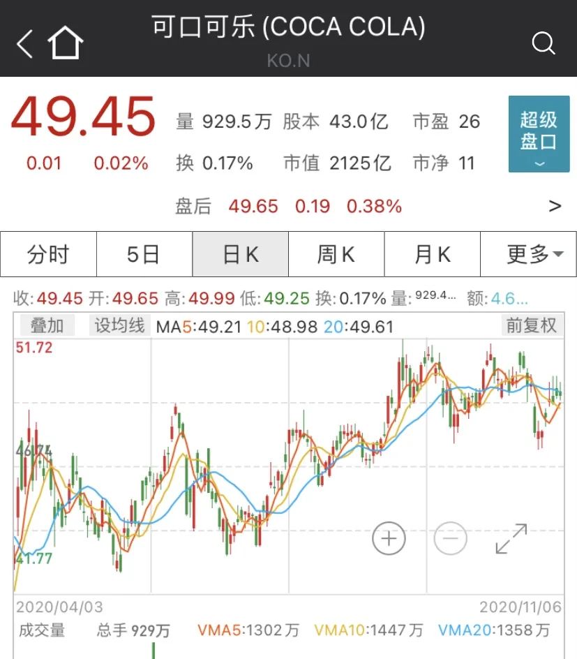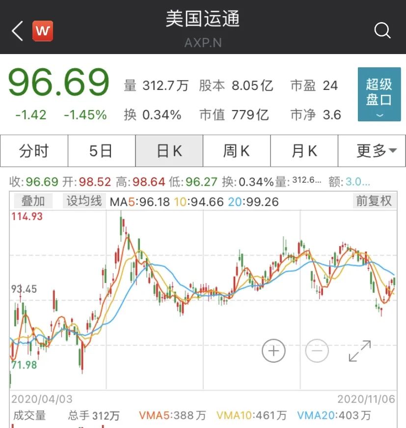 另外还持有152亿美元美国运通(AXP.US)股票,197亿美元可口可乐(KO.US)股票。这四只股票占约该公司70%的股票持仓。这四只股票占约该公司70%的股票持仓,近期表现主要以震荡上升为主。