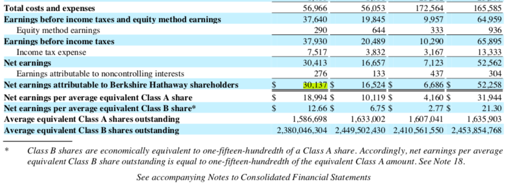 归属于公司股东净利润为301.37亿美元,较去年同期165.24亿美元增长82.4%;折合每股A类股收益为18994美元,去年同期为10119美元;折合每股B类收益为12.66美元,去年同期为6.75美元。