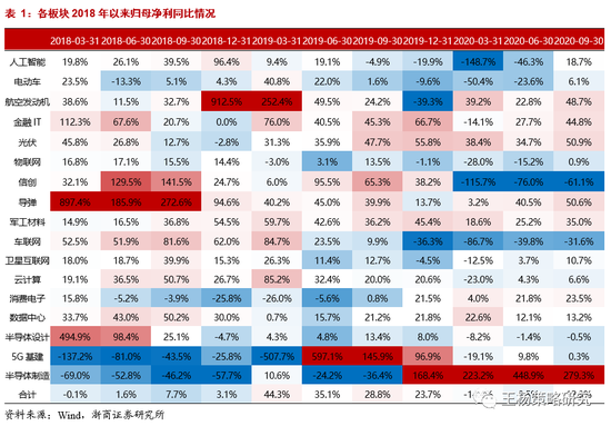 就2020年盈利预测而言,增速居前的板块有车联网、半导体制造、人工智能、卫星互联网、消费电子。