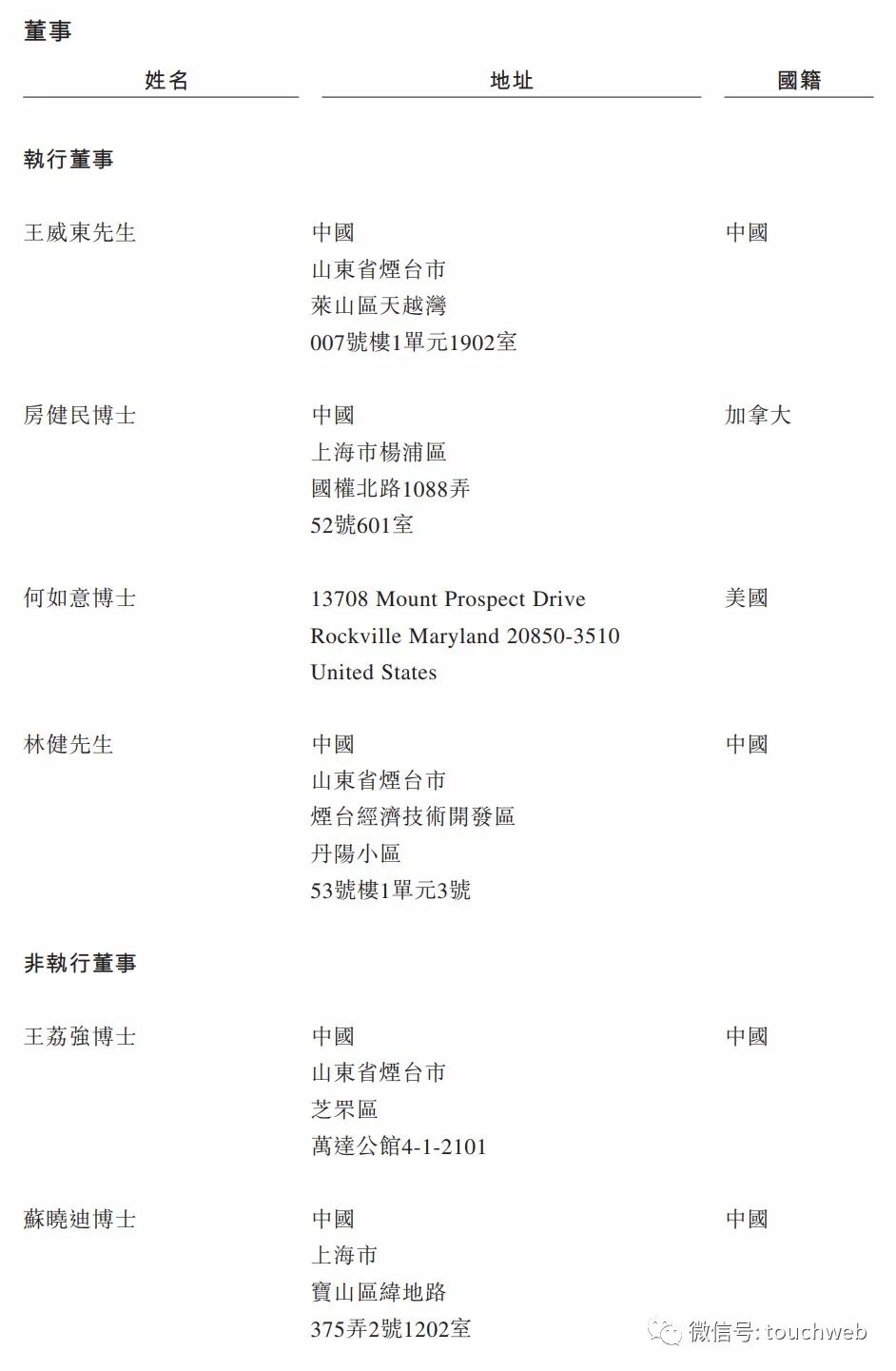 荣昌生物执行董事为王威东、房健民博士、何如意博士、林健;非执行董事为王荔强博士、苏晓迪博士;