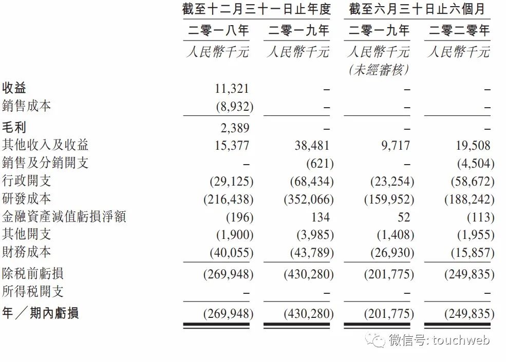 荣昌生物2018年、2019年期内亏损分别为2.7亿元、4.3亿元;荣昌生物2020年上半年期内亏损为2.5亿元,上年同期期内亏损为2亿元。