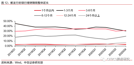 根据资管新规的要求,存量与新增的资管产品的投资范围会受到一定的限制,整体上倾向于短久期高流动性的券种。对于存量产品来说,金融机构需要保证在过渡期结束之前能顺利将整个产品结束,以往资金池的运作方式导致不少中短期限的理财产品配置了大量长久期债券,而随着这些资产逐步处置,如果需要进行再投资,自然会投资一些明年年底到期的或者流动性较好便于处置的资产。而对于新发产品来说,资金端与资产端都必须在期限上遵循严格的匹配要求。其实从银行理财发行的期限结构来看,银行已经很明显地开始逐步提高理财产品的期限,半年以下的理财产品占比越来越低,这样也是为了让产品的资产端有更大的选择范围和利润空间。但无论是对于开放式现金管理类产品还是中短期限的定开式产品,显然长久期债券的需求都会有所减少,甚至禁止配置。