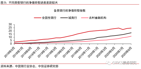 其一是对银行体系的外部性。规模庞大的表外理财如果回表,则对应了巨额的风险资本计提和拨备。今年受疫情影响,银行业不良贷款余额和不良贷款率已经有明显上升,从拨备覆盖率下降但贷款拨备率上升,便反映出银行资产质量明显下降,未来资本补充压力更大。尤其是部分中小银行,拨备水平较低,且补充资本的能力有限,渠道不多。在这一背景下,如何兼顾表内承接表外资产带来的资本补充压力,是银行体系面临的巨大挑战。过渡期延长一年虽然给予银行业更多补充资本的时间,但考虑到银行业也要投入资金扶持理财子公司的建设以推进理财净值化转型,预计银行业将时间转换成补充资本的空间的压力仍然相当大。