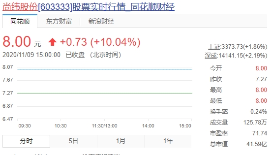 早在10月26日,尚纬股份就曾发布公告拟收购星空野望,并于次日股票停牌。在经过十个交易日后,尚纬股份股票终在今日(11月9日)复牌,受收购消息影响,尚纬股份一字涨停。目前最新市值达到41.59亿元,较复牌前市值上涨4亿元。