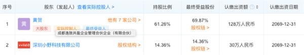 综合天眼查数据以及尚纬股份发布的公告,成都星空野望科技有限公司成立于2020年4月,法定代表人为黄贺,注册资本约为209万元。控股股东为黄贺,持股61.2571%;深圳小野科技有限公司(下称“小野科技”)持股14.36%,位列第二大股东。而这两者都与罗永浩有着紧密关联。