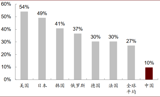 图表: 2019主要国家超市行业前五大公司合计份额对比