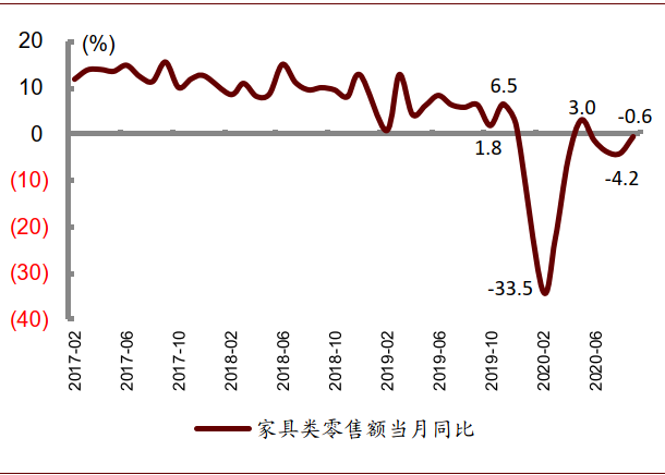 图表: 中国限额以上家具类零售额当月同比情况