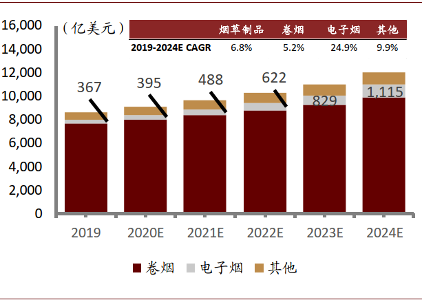 图表: 电子烟是全球烟草市场中增速最快的细分赛道
