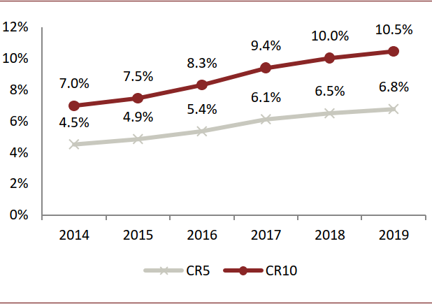 图表: 中国家居行业市场集中度持续提升