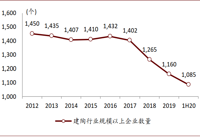 图表: 中国建筑陶瓷行业规模以上企业数量