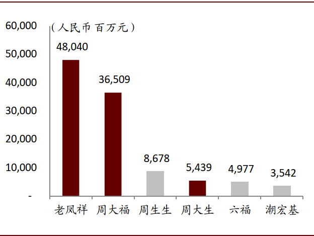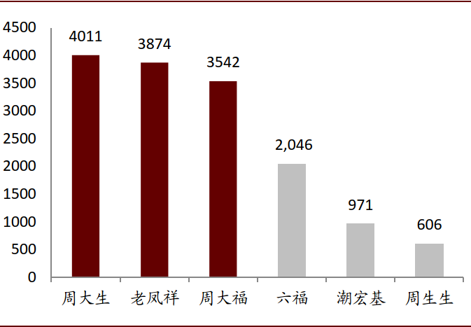 注:周大生、老凤祥、潮宏基、周生生采用2019年数据,周大福、六福采用FY20数据