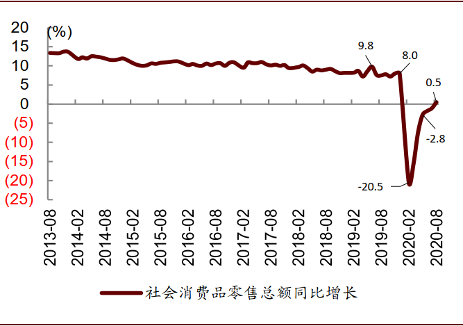 图表: 中国社会消费品零售总额增长情况