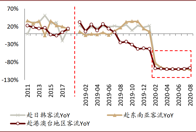 我们认为出境游将继续受疫情负面影响,我们预计2021年依然存在明显的出境游限制,出境游人次相比2019年仍有明显下滑。