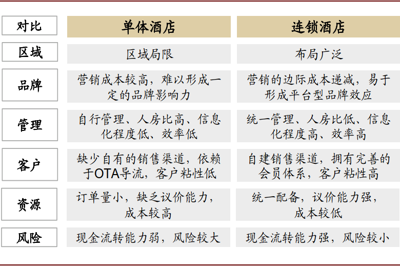 图表: 单体酒店和连锁酒店多维度对比