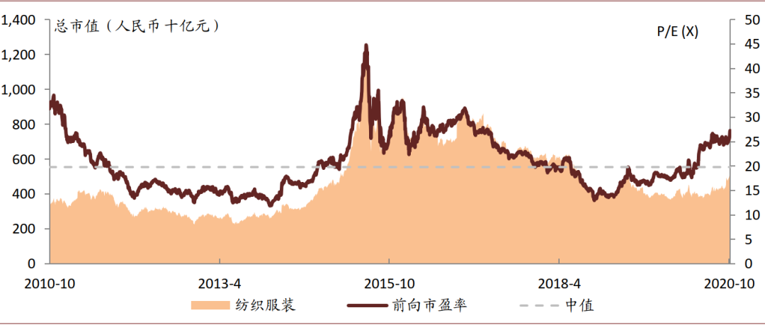 ► 当前纺织服装板块的大市值、高流动性龙头公司估值通常在25倍以上未来12个月市盈率的水平,我们认为这些公司独特且稳固的竞争优势带来的增长确定性、竞争壁垒及现金回报可以支撑这些标的目前的估值水平。