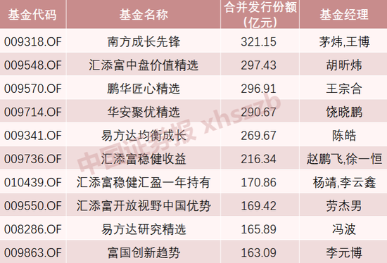 其中,南方成长先锋以321.15亿元位居今年新基金发行规模首位,该基金也是历史上成立规模第三大的主动权益基金。此外,汇添富中盘价值精选、鹏华匠心精选、华安聚优精选、易方达均衡成长、汇添富稳健收益的首发规模都超过了200亿元。易方达高质量严选三年持有将成为第37只百亿级新基金。