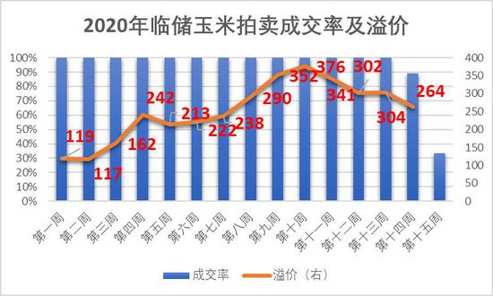 图1:临储玉米拍卖成交量及溢价