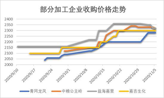 图4:部分加工企业收价走势