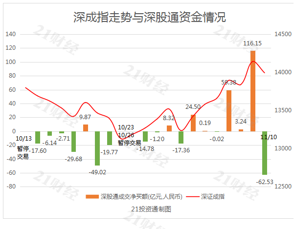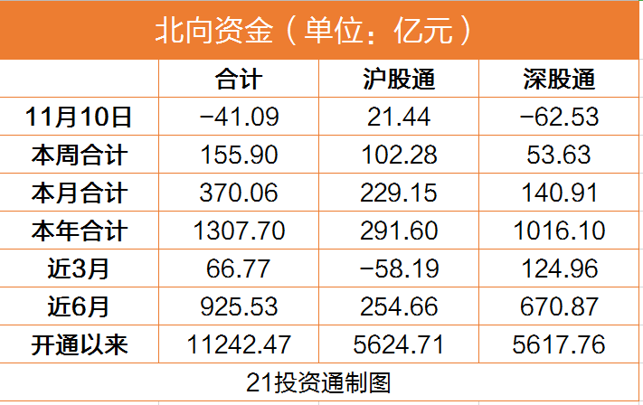 北向资金也打破了连续6日疯狂净买入的局面,今日净流出41.09亿元,且内部出现分化,沪股通净买入21.44亿,深股通净流出62.53亿。