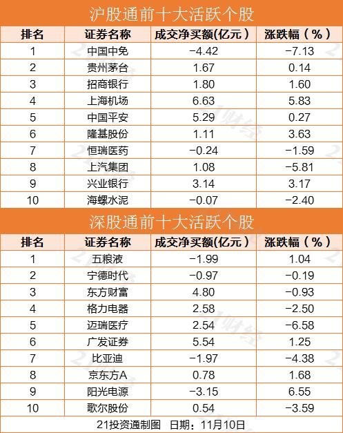 十大活跃个股方面,中国中免、阳光电源、五粮液分别遭净卖出4.42亿元、3.15亿元、1.99亿元;上海机场逆市获净买入6.63亿元。